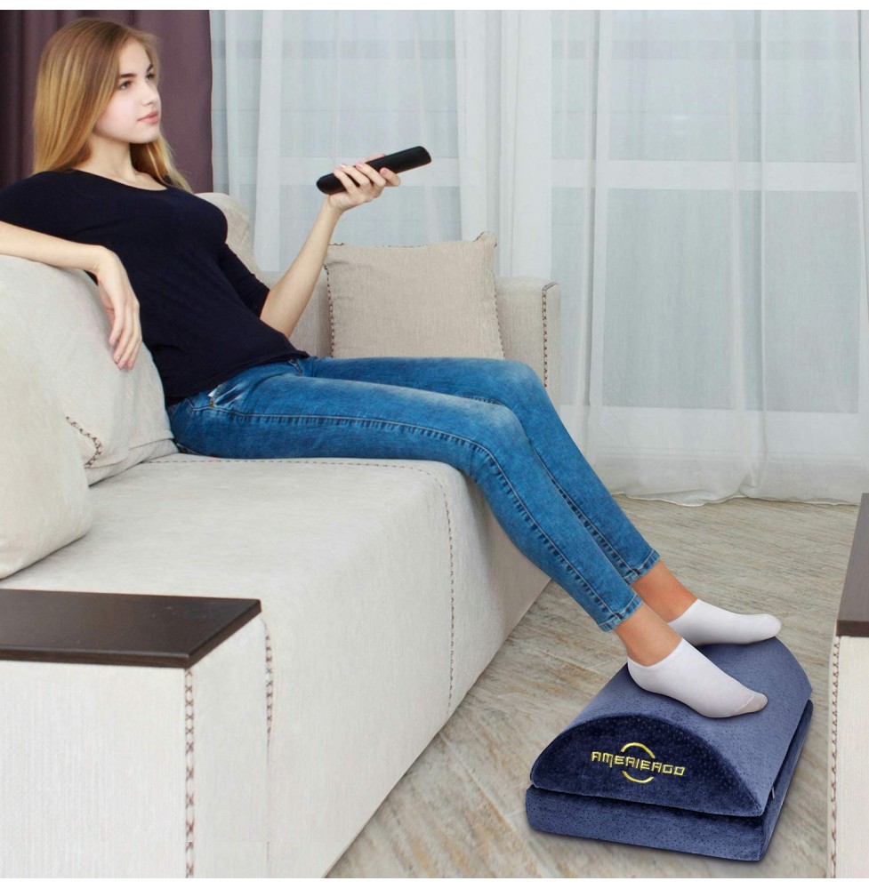 Foot Rest for Under Desk at Work , Ergonomic Memory Foam Foot Stool Cushion for Home Office, Gaming, Computer - Adjustable 2 Heights Under Desk Footrest with Breathable Washable Cover by AMERIERGO