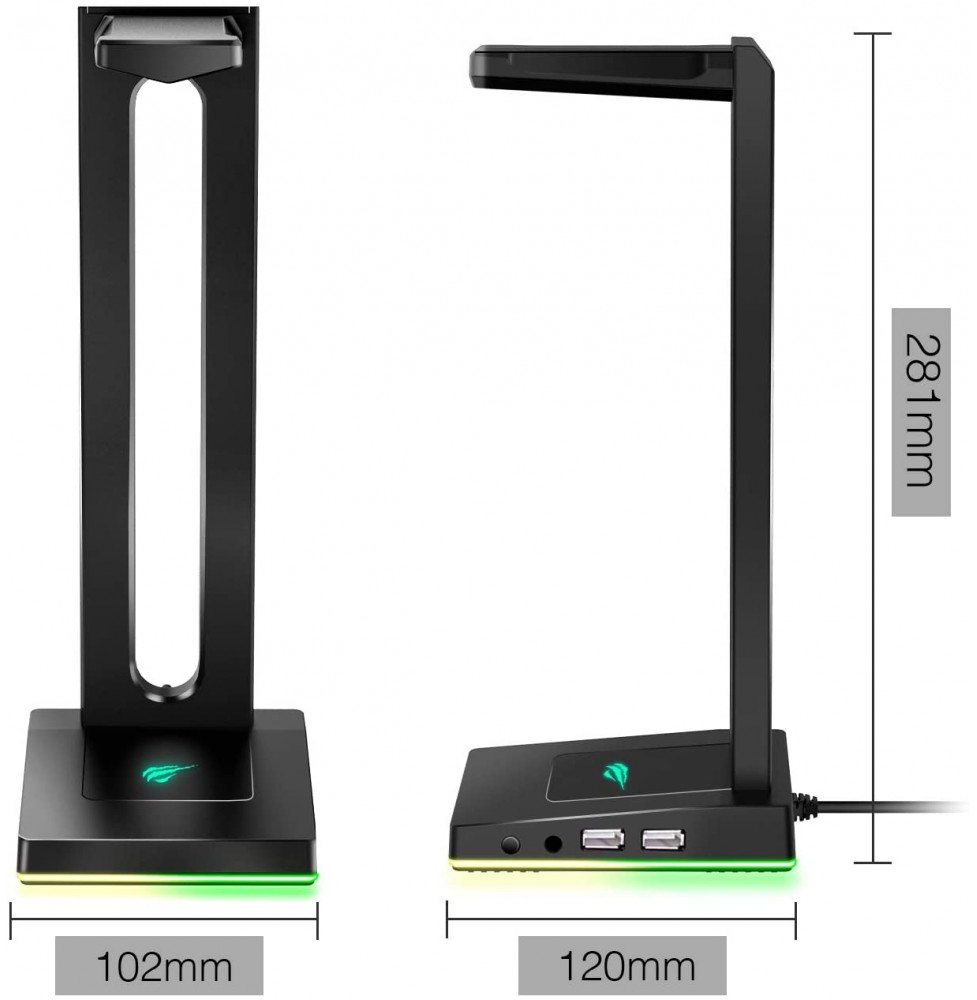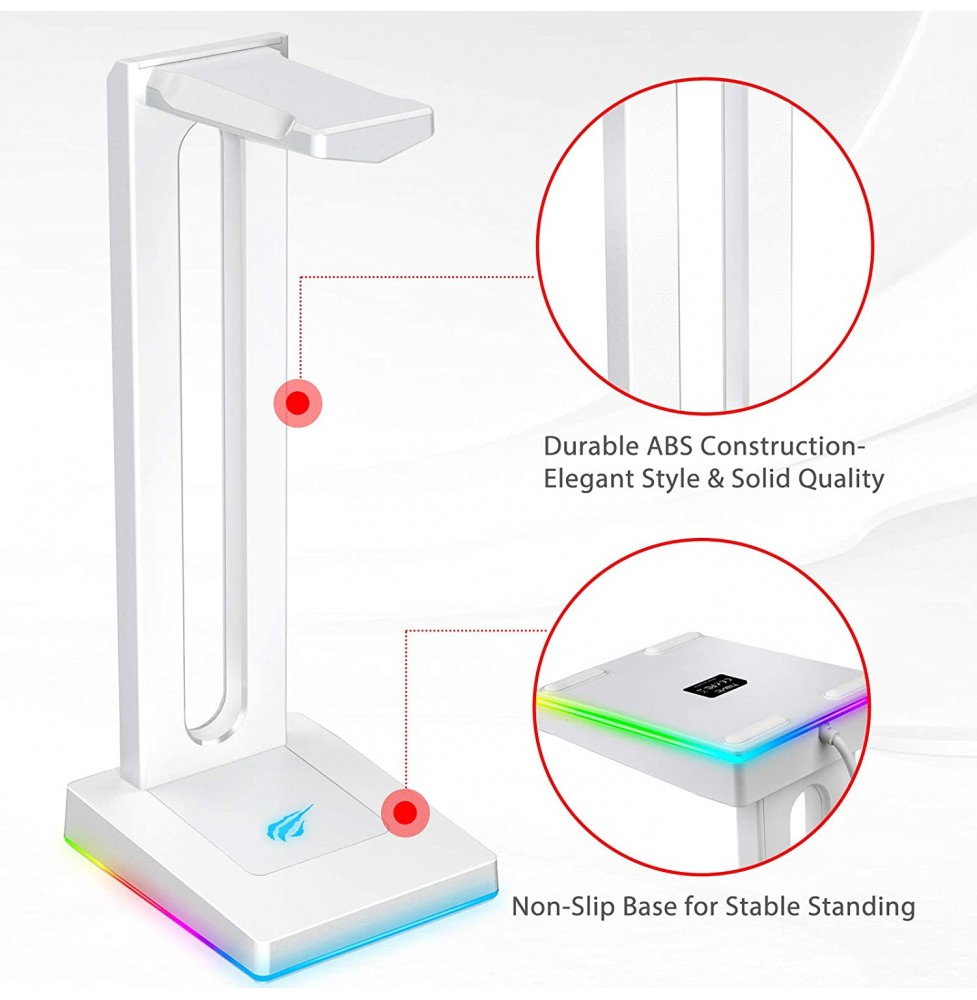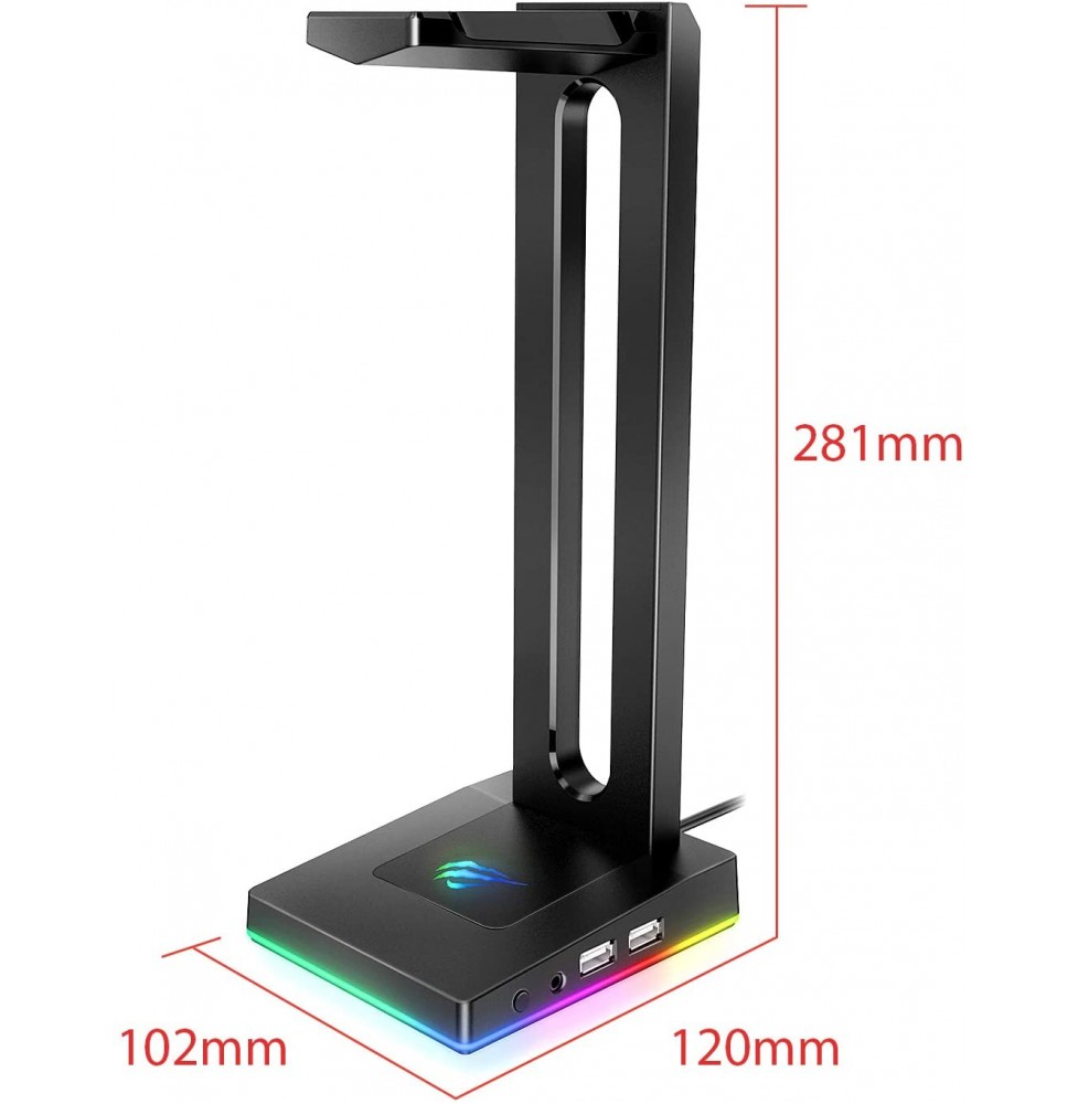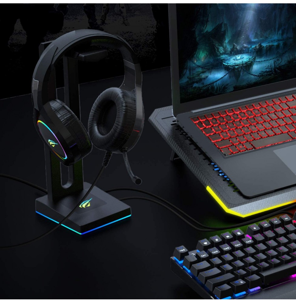 Havit RGB Headphones Stand with 3.5mm AUX and 2 USB Ports, Headphone Holder for Gamers Gaming PC Accessories Desk
