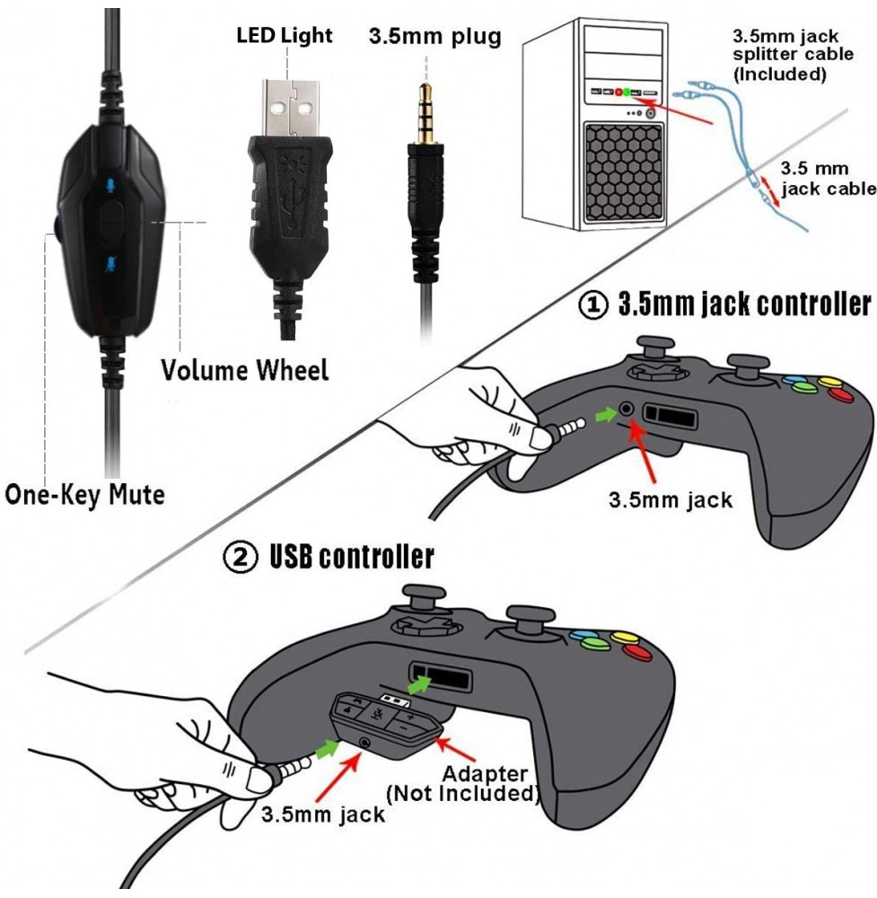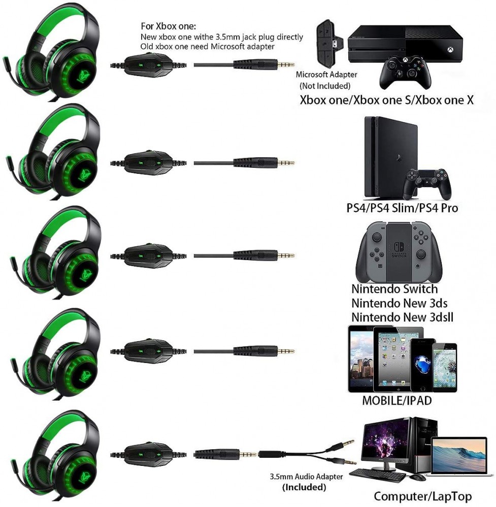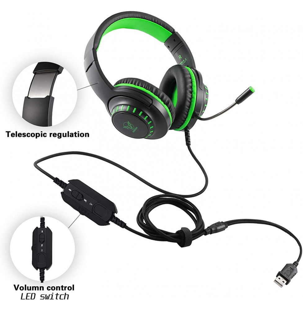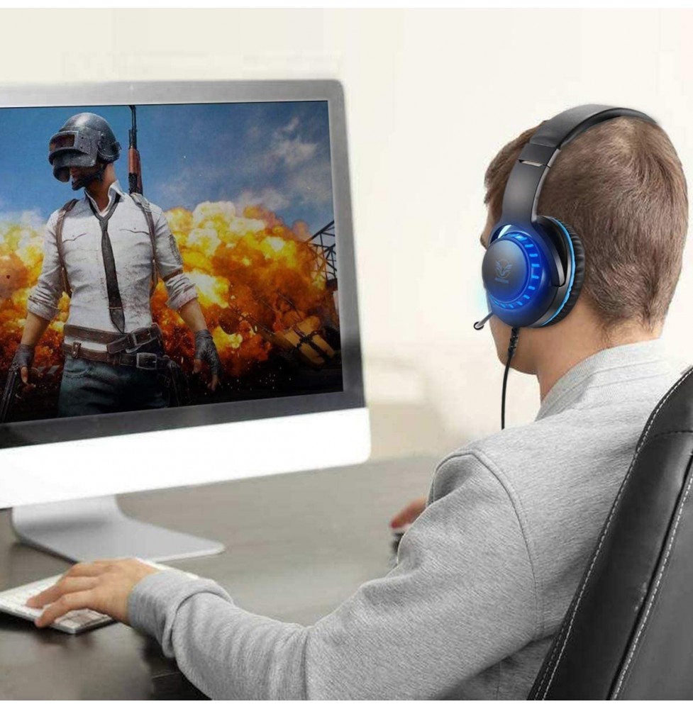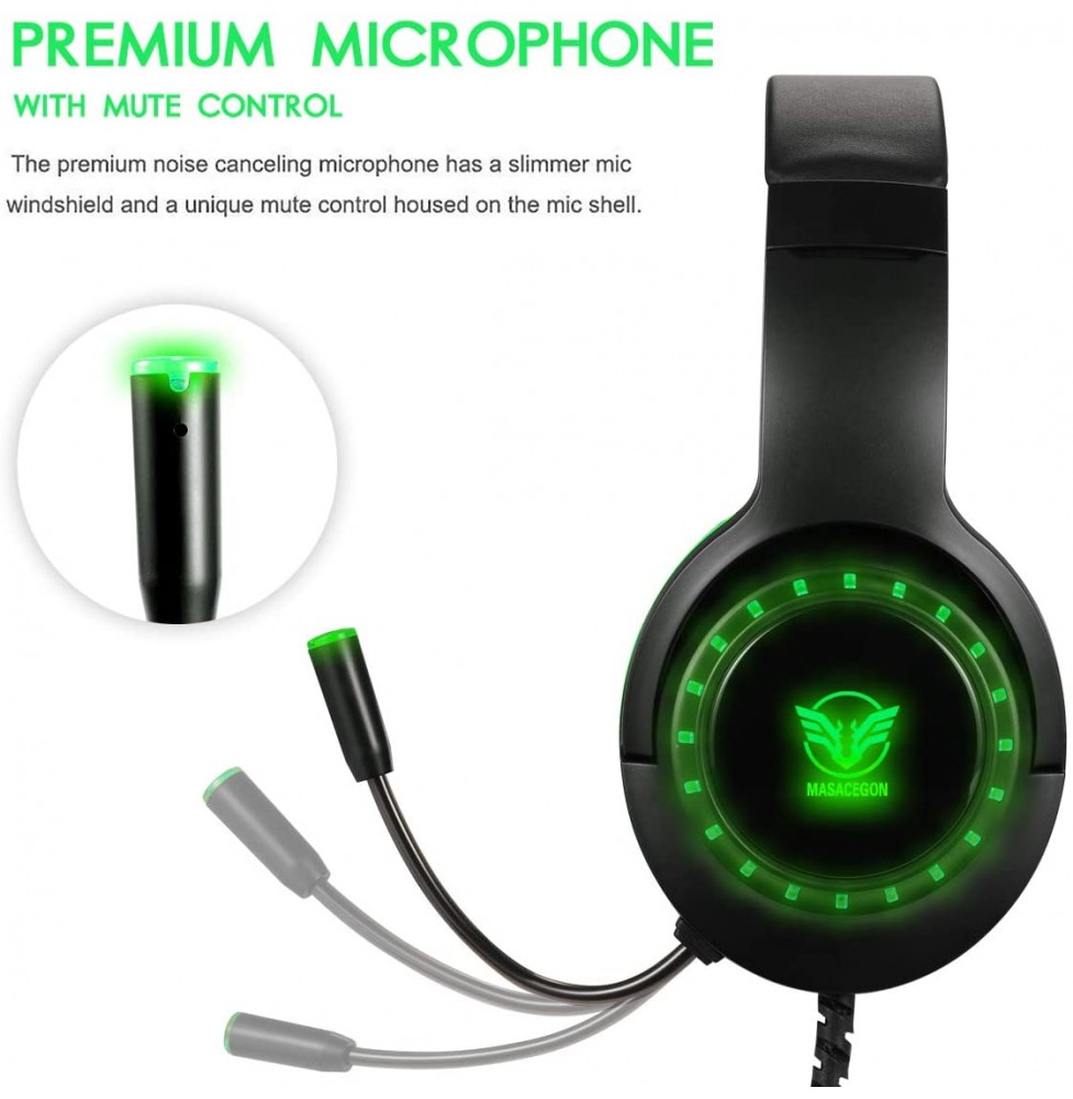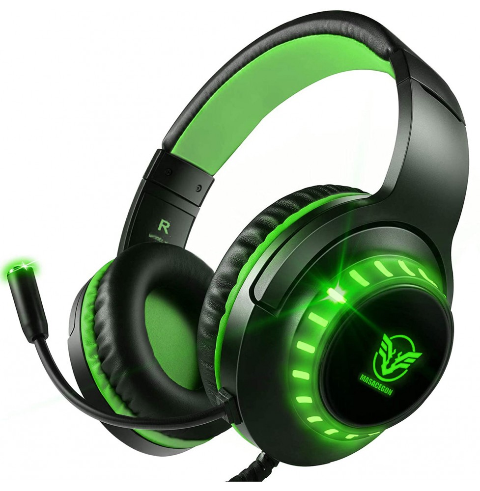 Pacrate Gaming Headset with Microphone for Laptop Xbox One Headset Computer PC Noise Cancelling Gaming Headphones with Microphone Stereo PS4 Headset for Kids Adults LED Lights Deep Bass